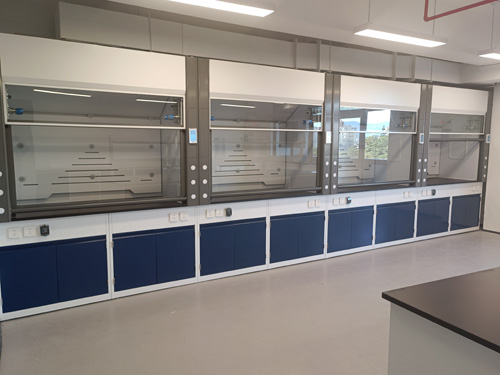 (1)上部柜體:采雙層結構,外層為鋼殼,內層為實驗室專用耐酸堿6mm厚抗倍特板,具有防潮濕、防彎曲、抗沖擊等性能;對于需要在臺面進行洗滌的通風柜,其內襯板滿足抗潮和抗腐蝕要求.外殼與內襯間夾層,可容納水、電、氣體管線系統,并可確保柜體氣密與防護。